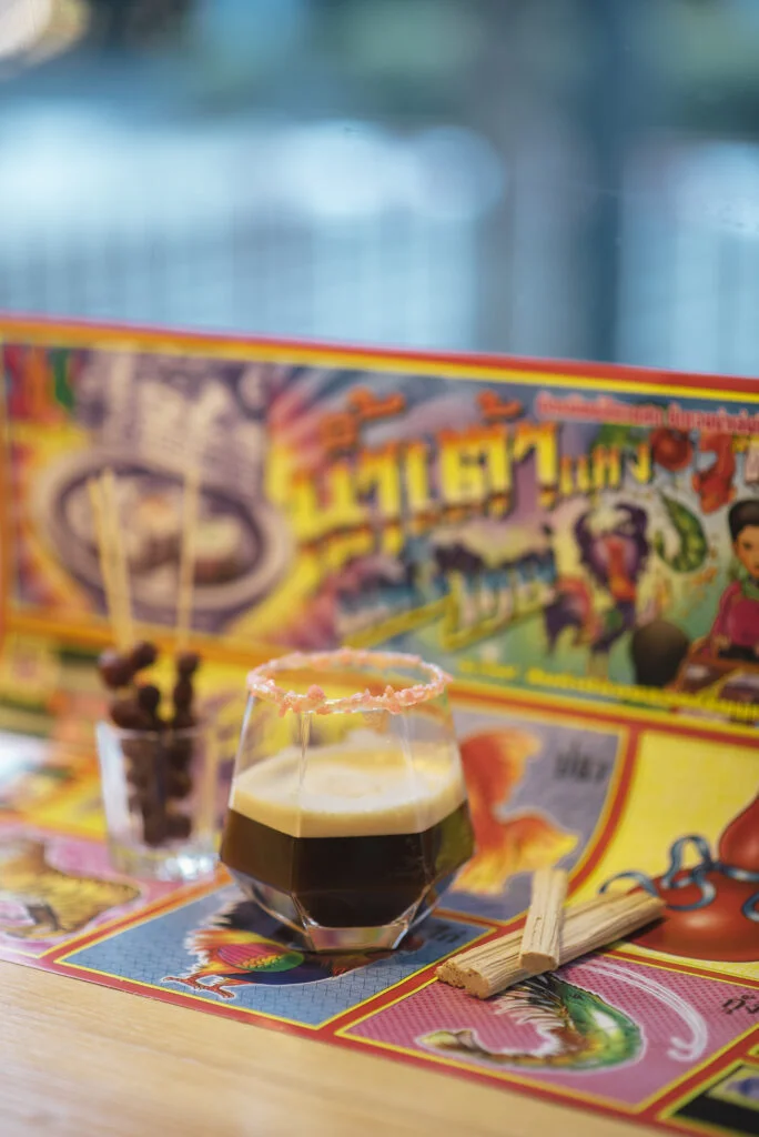 Somreudi Yon Wela (loosely translated as Transtemporal Contentment) harks back to childhood nostalgia. This recipe incorporates traditional Thai ingredients such as gooseberry in syrup with a decoration of classic Thai toys to demonstrate a menu that is packed with flavors and unique characteristics.
