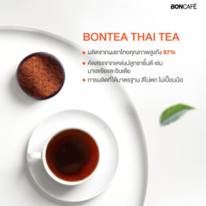 - Bon Tea Thai Tea (Original Recipe) Experience the authentic taste of traditional Thai tea with Bon Tea Original Thai Tea. Made from 97% high-quality Thai tea powder, this tea delivers a rich, smooth flavor and a distinctive aroma, with a naturally vibrant orange color. Carefully selected ingredients come from premium tea-growing regions such as Malaysia and India, crafted with Boncafe’s…