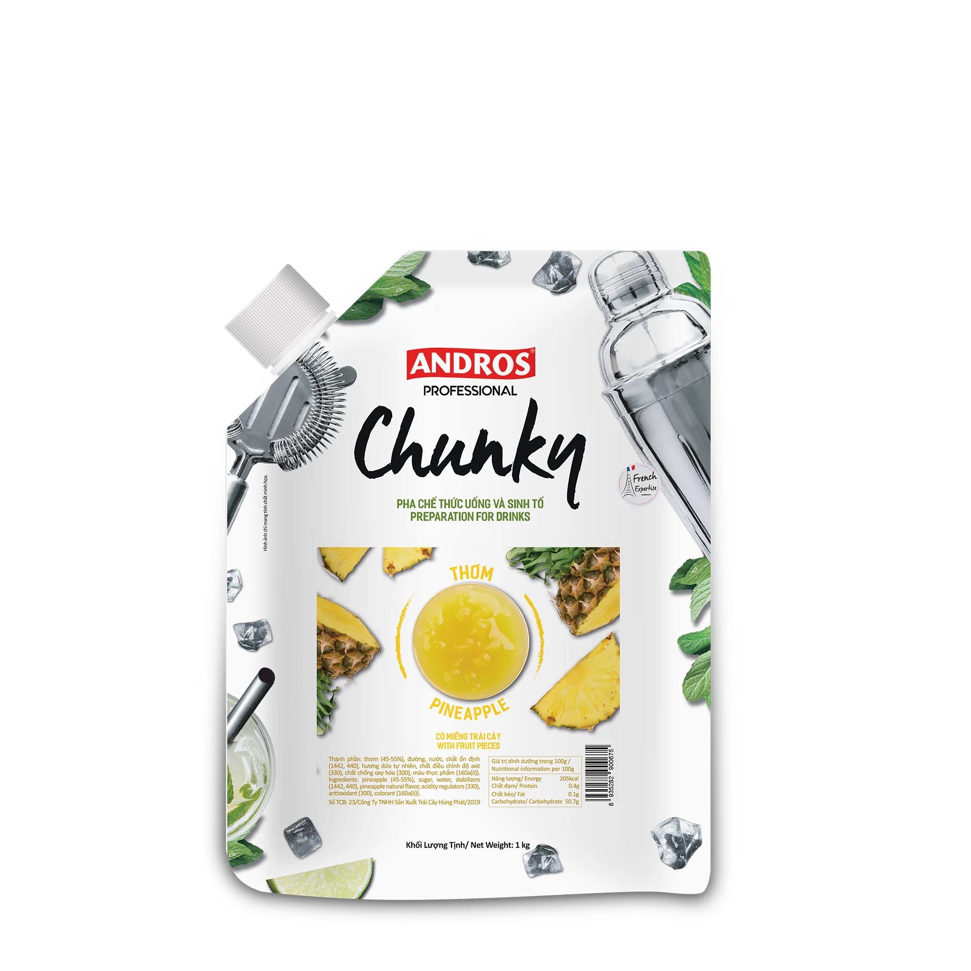 Andros Fruit Chunky Pineapple offers a sweet and slightly tangy flavor, consistent in every pouch. Perfect for refreshing summer beverages, it can be used in fruit teas, fruit yogurt, mixed with soda, or as an ingredient for mocktails and cocktails.