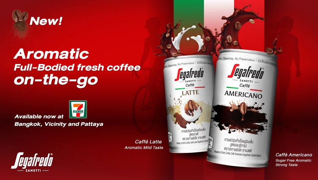 Topclass Italian coffee manufacturer Segafredo Zanetti has launched the latest on-the-go Segafredo coffee drink into the Thai markets; brewed with authentic coffee grinds from one of the brand’s oldest coffee blends, which reserves the full Italian coffee flavors with a delicateness reminder of the arabica coffee beans along with the rich coffee taste from the robusta coffee beans. All of the manufacturing methods are carried out meticulously starting from the cultivation area to the can production process for everyone to drink easily. There are 2 flavors of the aromatic full-bodied fresh coffee on-the-go for you to choose; the aromatic mild taste Caffe Latte and the sugar free aromatic strong taste Caffe Americano. You can purchase the 180ml coffee can for only 25 baht to drink at any time and anywhere, as if bringing your favorite coffee cafe to you nearby.