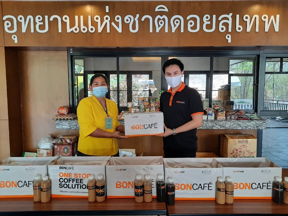 บริษัท บอนกาแฟ (ประเทศไทย) จำกัด ขอร่วมแสดงความห่วงใยในการสนับสนุนการทำงาน และส่งกำลังใจให้กับบุคลากรผู้ปฏิบัติหน้าที่ในช่วงสถานการณ์วิกฤต COVID-19 โดยการส่งมอบเครื่องดื่มแสนอร่อย จากผลิตภัณฑ์บอนกาแฟ ได้แก่ กาแฟเย็นรสชาติเข้มข้นหอมกรุ่นจากเมล็ดกาแฟคุณภาพ ชานมไทยรสกลมกล่อม และเครื่องดื่มโกโก้เย็นจากผงโกโก้ 100% ตราบอนกาแฟ เพื่อเพิ่มพลังแก่คณะผู้ทำงานให้สามารถต่อสู้กับสถานการณ์ได้อย่างราบรื่น งานนี้นำทีมโดย คุณอุษาพรรณ อินทีวรวงศ์ ประธานเจ้าหน้าที่ฝ่ายบริหาร บริษัท บอนกาแฟ (ประเทศไทย) จำกัด เป็นตัวแทนในการส่งมอบเครื่องดื่มจากผลิตภัณฑ์บอนกาแฟให้แก่ คณะแพทย์และพยาบาลโรงพยาบาลรามาธิบดี โรงพยาบาลพญาไท 2 คณะเจ้าหน้าที่มูลนิธิร่วมกตัญญู และยังส่งต่อความห่วงใยอย่างต่อเนื่องไปยังเขตพื้นที่ปฏิบัติการทั่วประเทศ โดยมีตัวแทนจากบอนกาแฟสาขาต่างๆ ทั้ง 23 สาขา เป็นผู้ส่งมอบความห่วงใยผ่านเครื่องดื่มแสนอร่อยจากบอนกาแฟ อาทิเช่น คณะผู้ปฎิบัติงานภายในศูนย์กักกันโควิด-19 จังหวัดเชียงราย คณะผู้ปฎิบัตงานด่านตรวจจุดคัดกรอง จังหวัดจันทบุรี บุคคลากรทางการแพทย์โรงพยาบาลราชบุรีและสาธารณสุขจังหวัดราชบุรี เป็นต้น