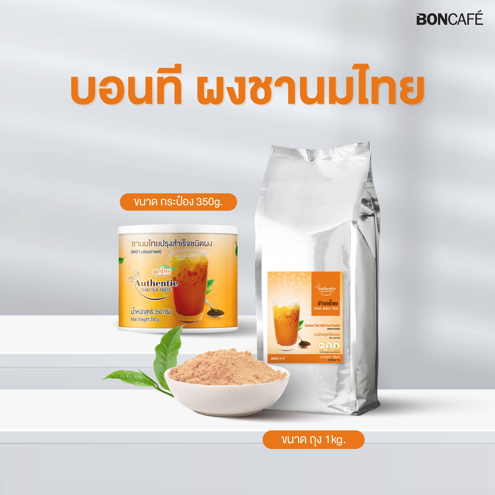 คัดสรรชาคุณภาพสูง นำมาสกัดด้วยกรรมวิธีเฉพาะจนได้ ผงชาดำคุณภาพ คงรสชาติและกลิ่นเหมือนชาใบแท้ นำมาผสมกับนมและส่วนผสมอื่น ๆ ตามสูตรลับของบอนกาแฟ จนได้ รสชาติ กลิ่น และสีส้มสวยงาม ตามต้นตำรับของ ชานมไทยหรือชานมเย็นแท้