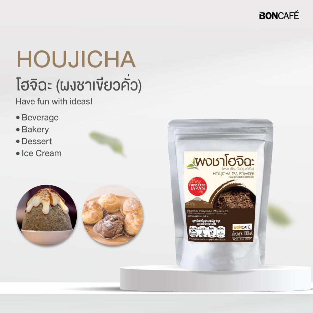 ผงชาโฮจิฉะ คือ ชาเขียวคั่วสัญชาติญี่ปุ่น โดยคำว่า “โฮจิ” หมายถึง คั่ว และ “ฉะ” หมายถึง ชา ชาโฮจิฉะจึงเป็นชาเขียวที่ผ่านกระบวนการคั่ว ทำให้มีสีสีน้ำตาลแตกต่างจากผงชาเขียวทั่วไป