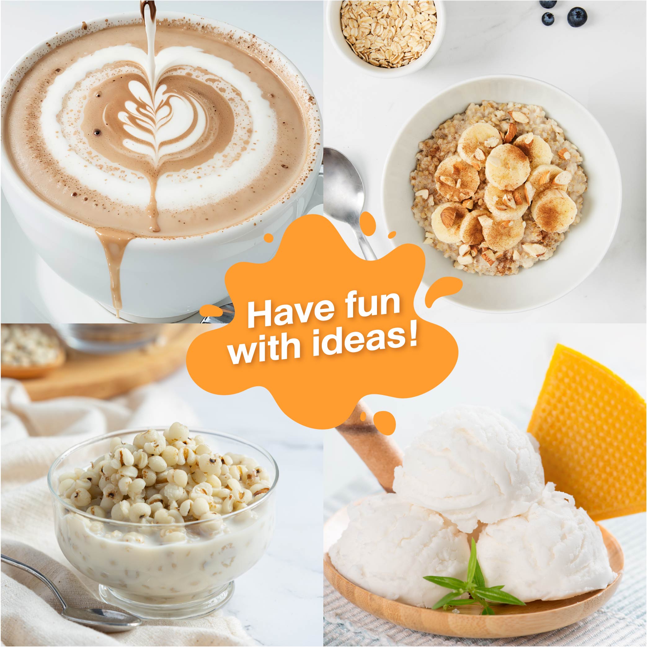 เหมาะกับการผสมเครื่องดื่มทั้งเมนูร้อน และเย็น ไม่กลบกลิ่น และรสชาติของเครื่องดื่ม สตีมฟองนมได้เนียน เหมาะสำหรับเทลาเต้อาร์ต ฟองนมคงตัวได้นาน