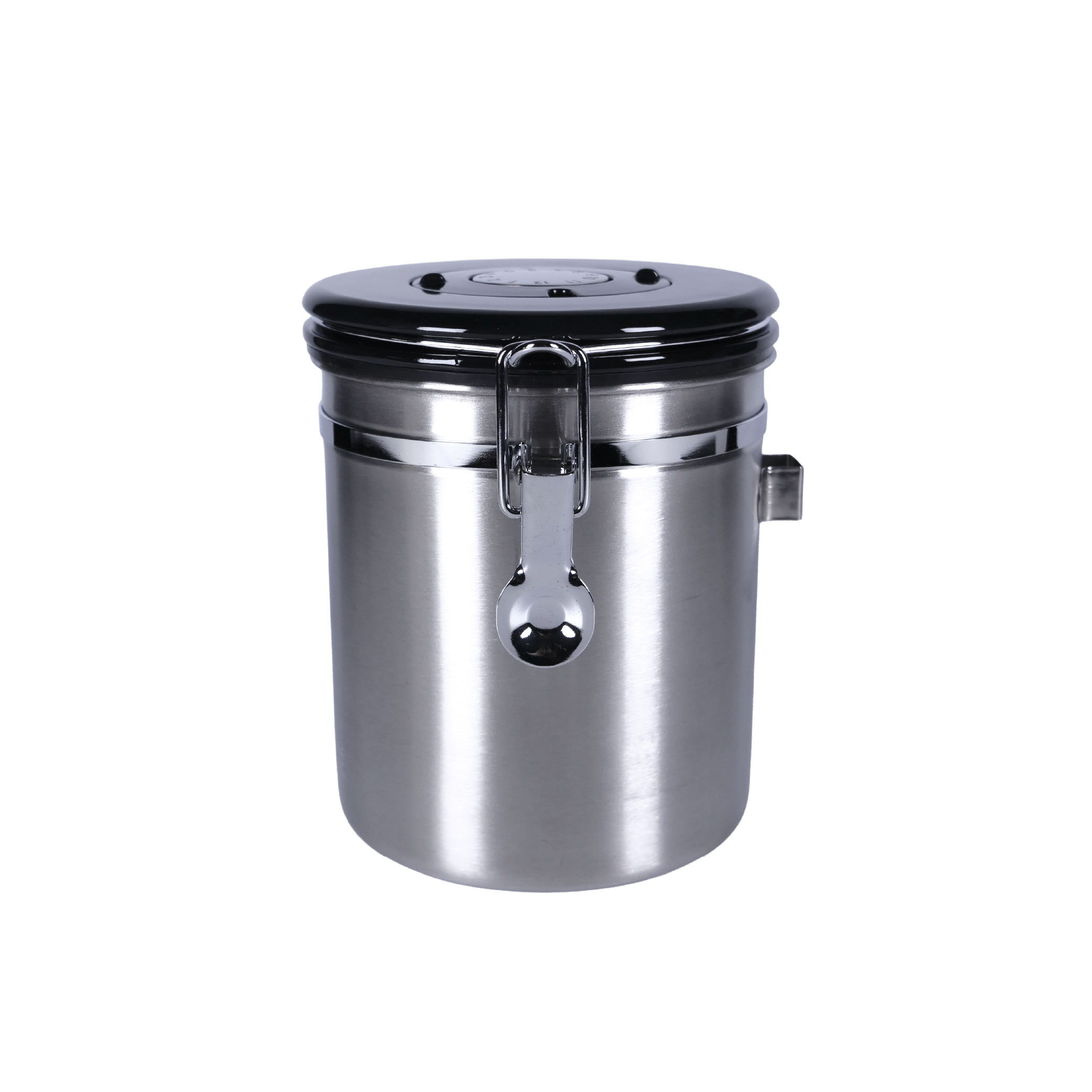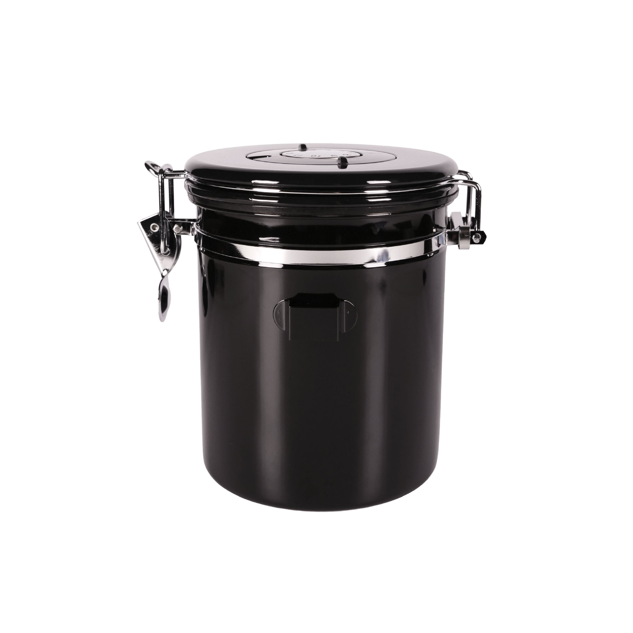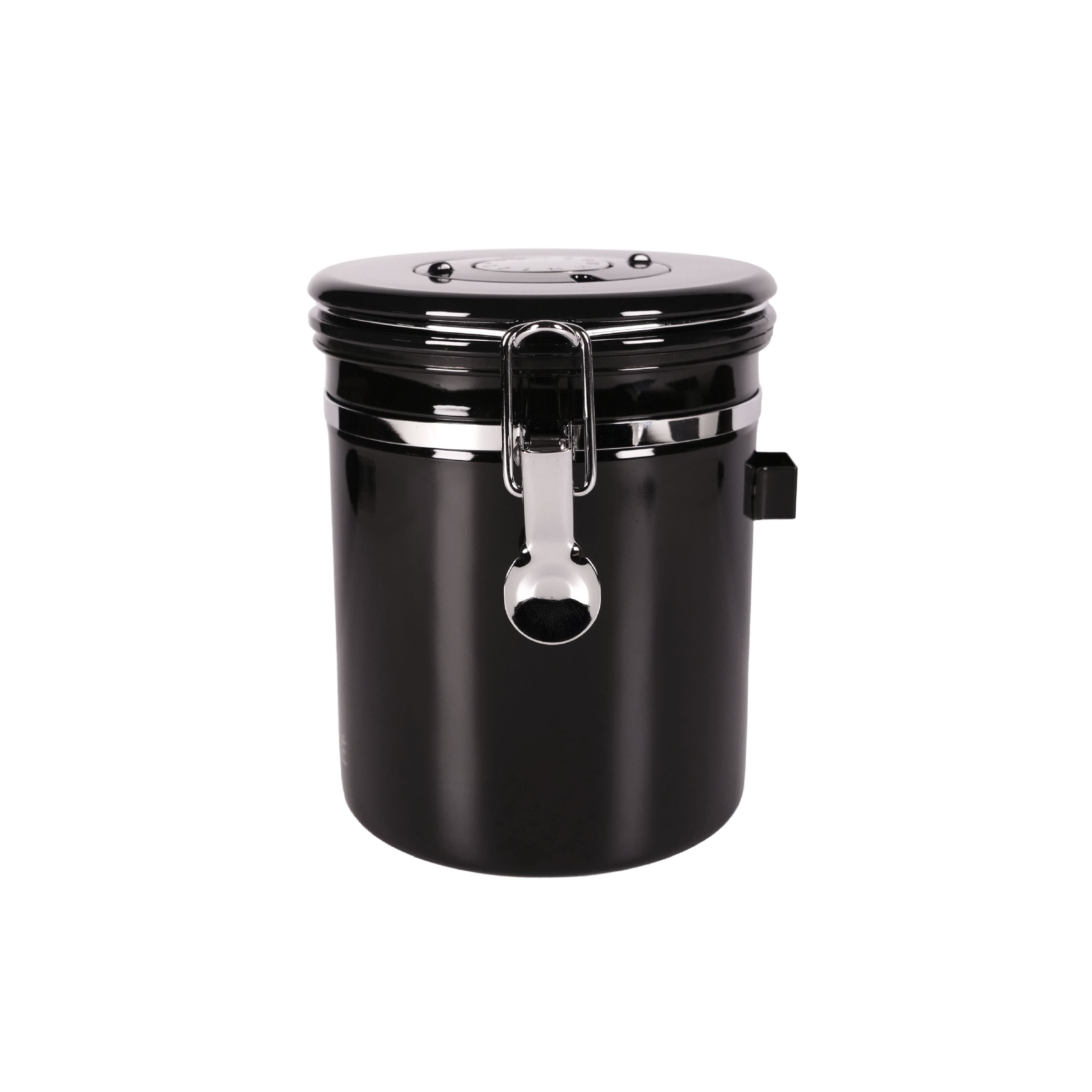 ภาชนะเก็บกาแฟ ขนาด 1,500 มิลลิลิตร พร้อมช้อน สีดำ และ สีสแตนเลส