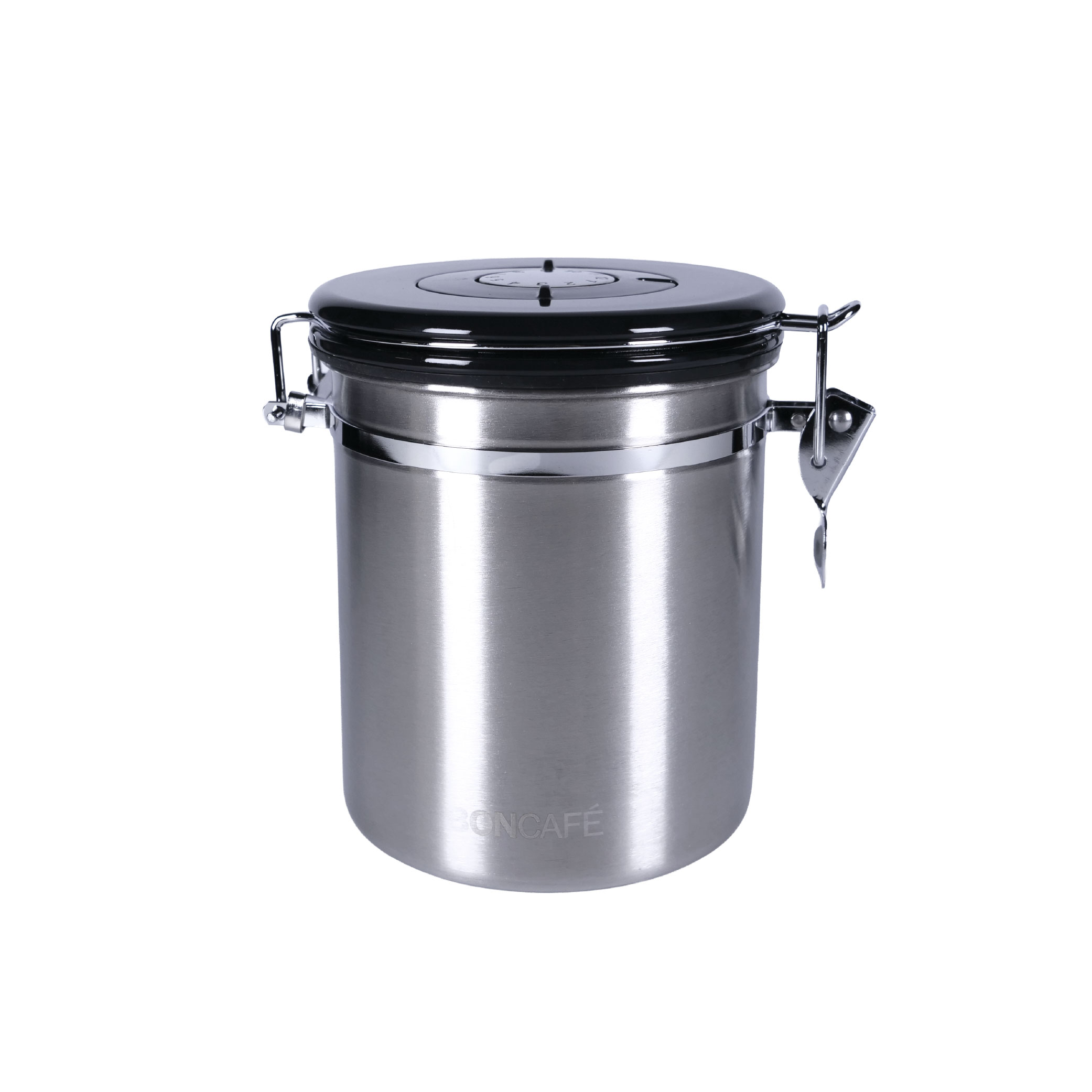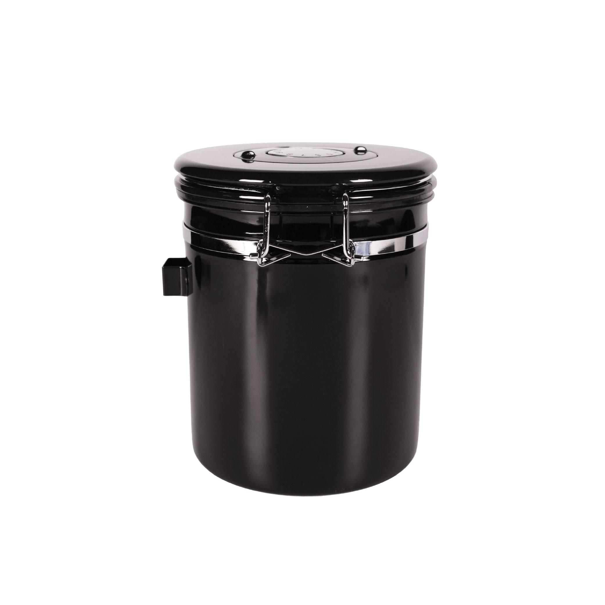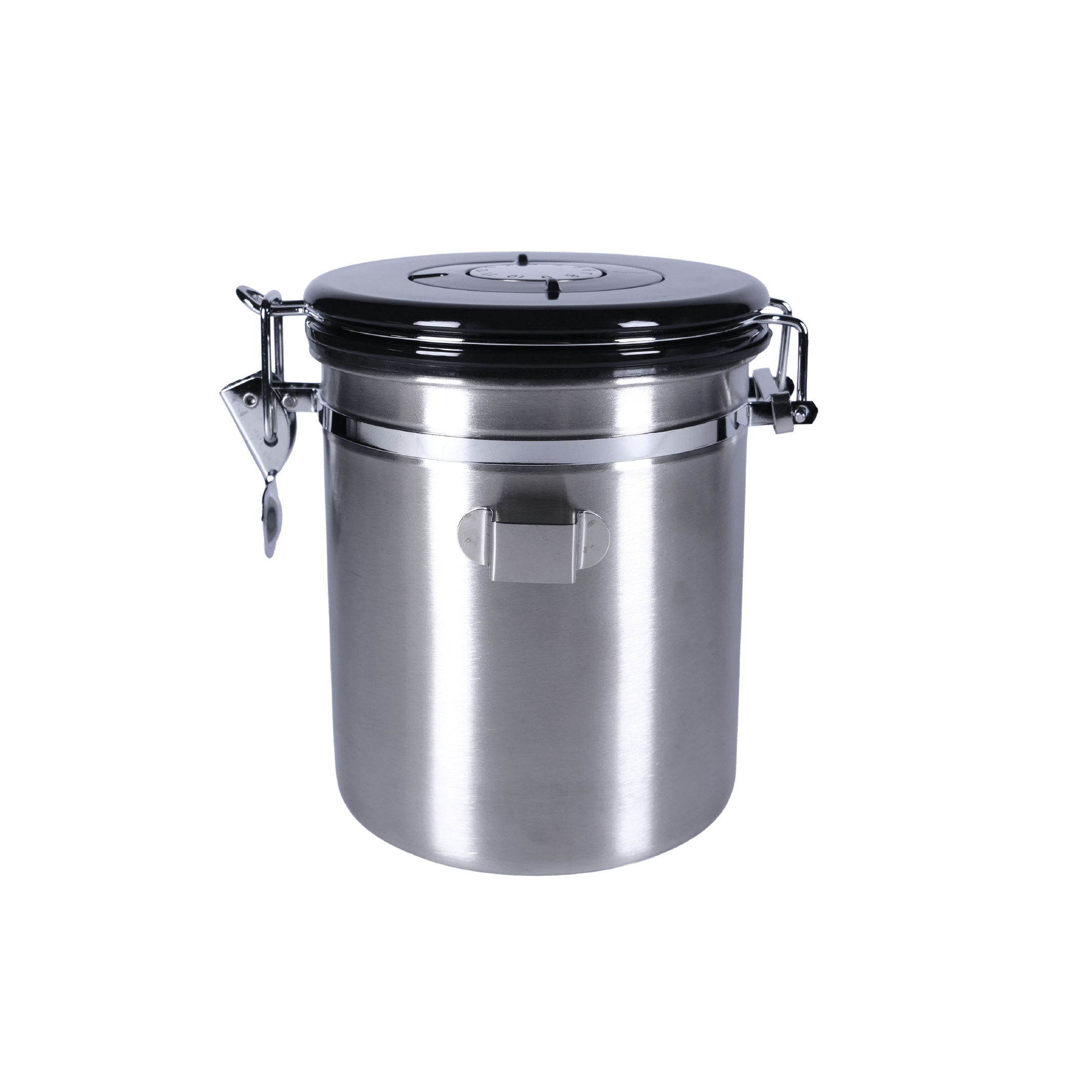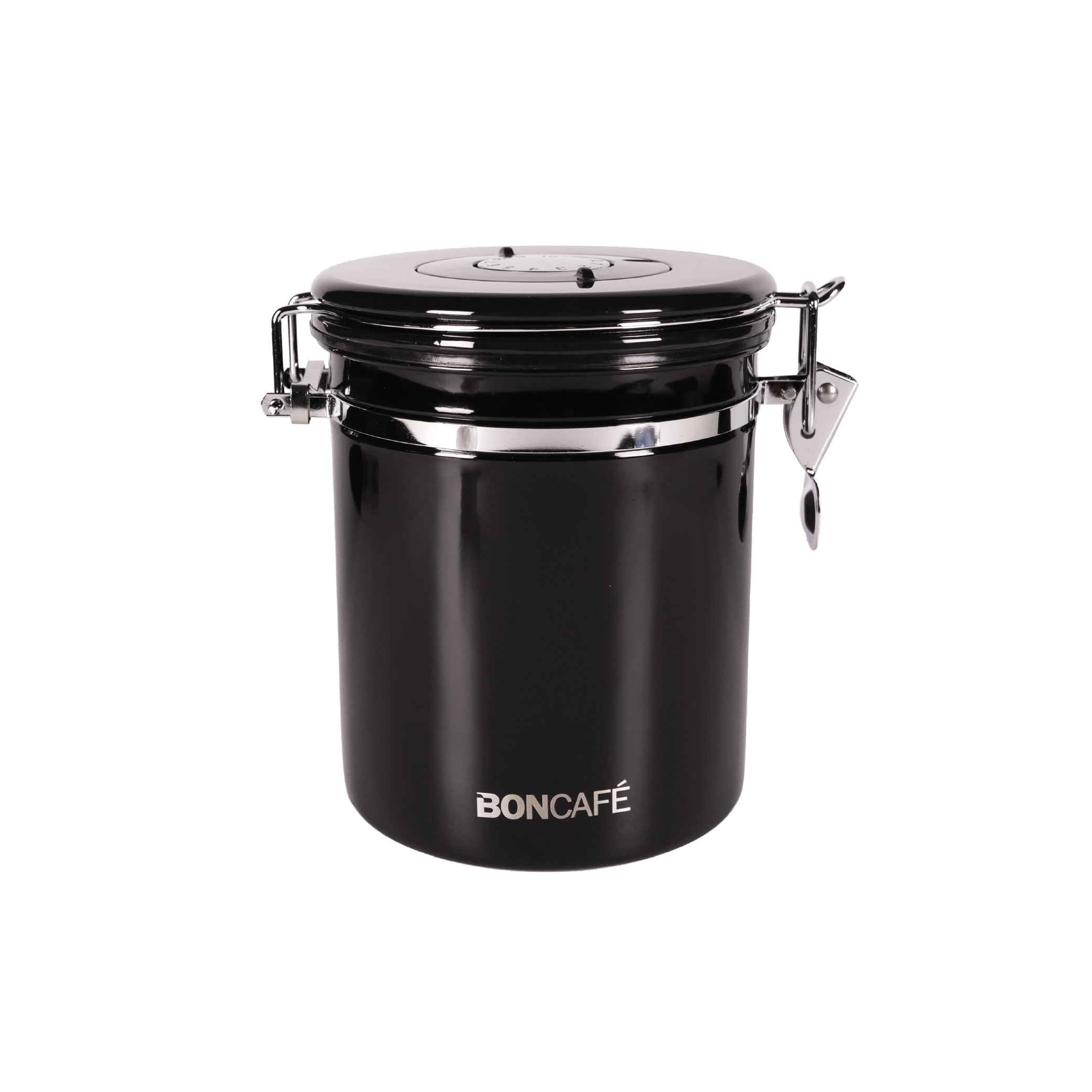 ภาชนะเก็บกาแฟ ขนาด 1,500 มิลลิลิตร พร้อมช้อน สีดำ และ สีสแตนเลส